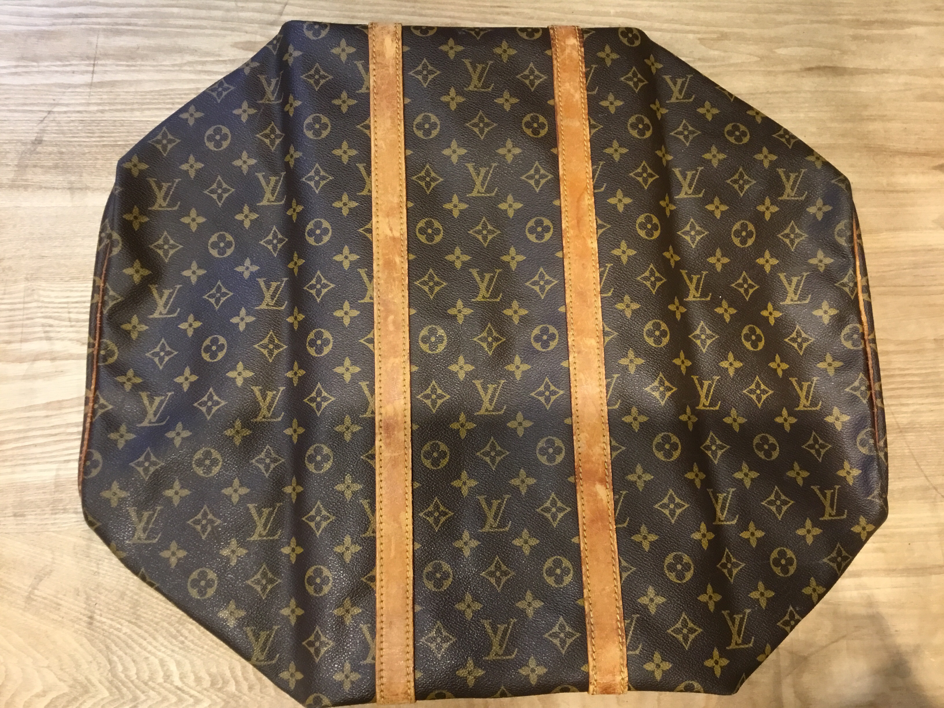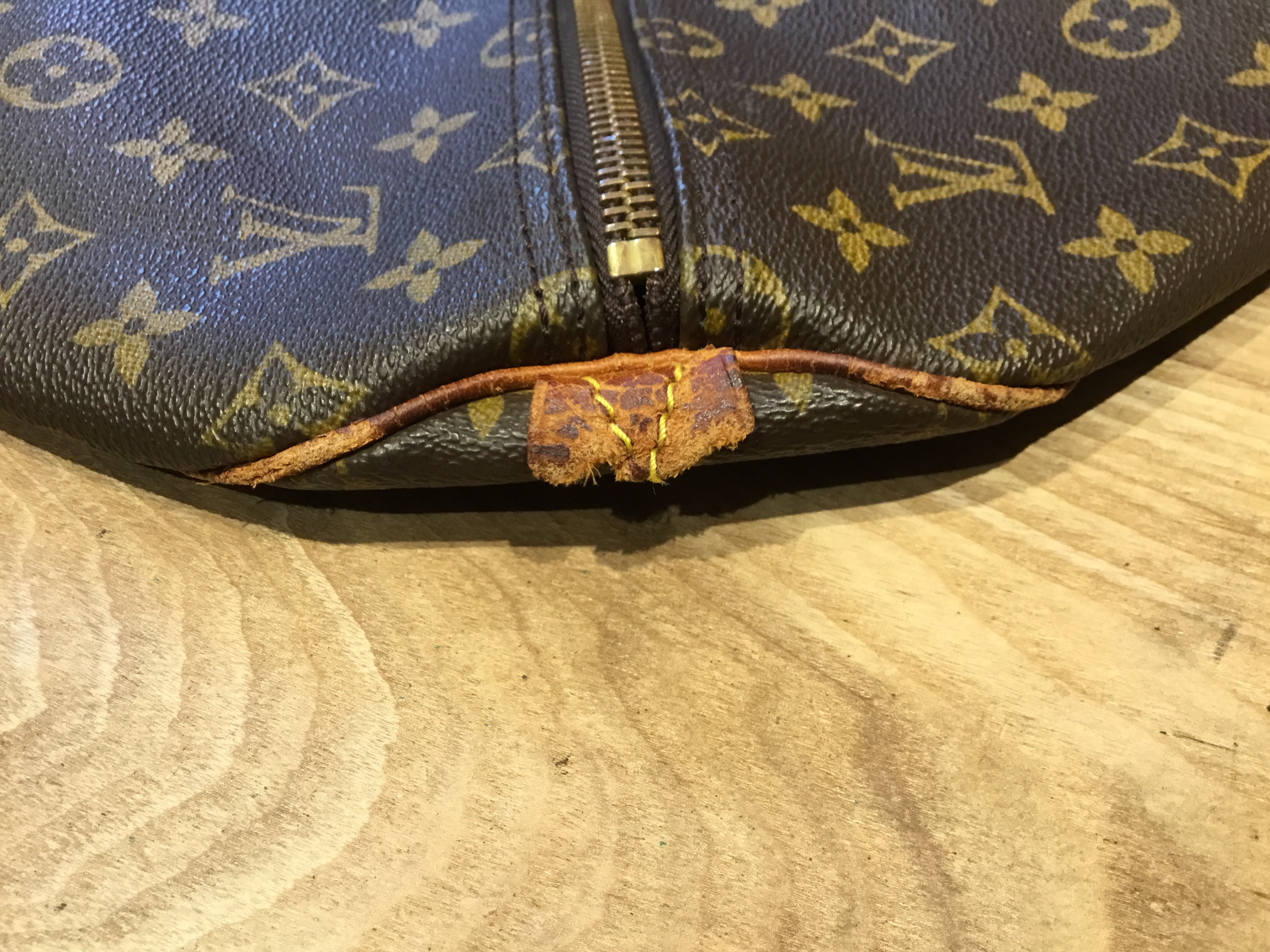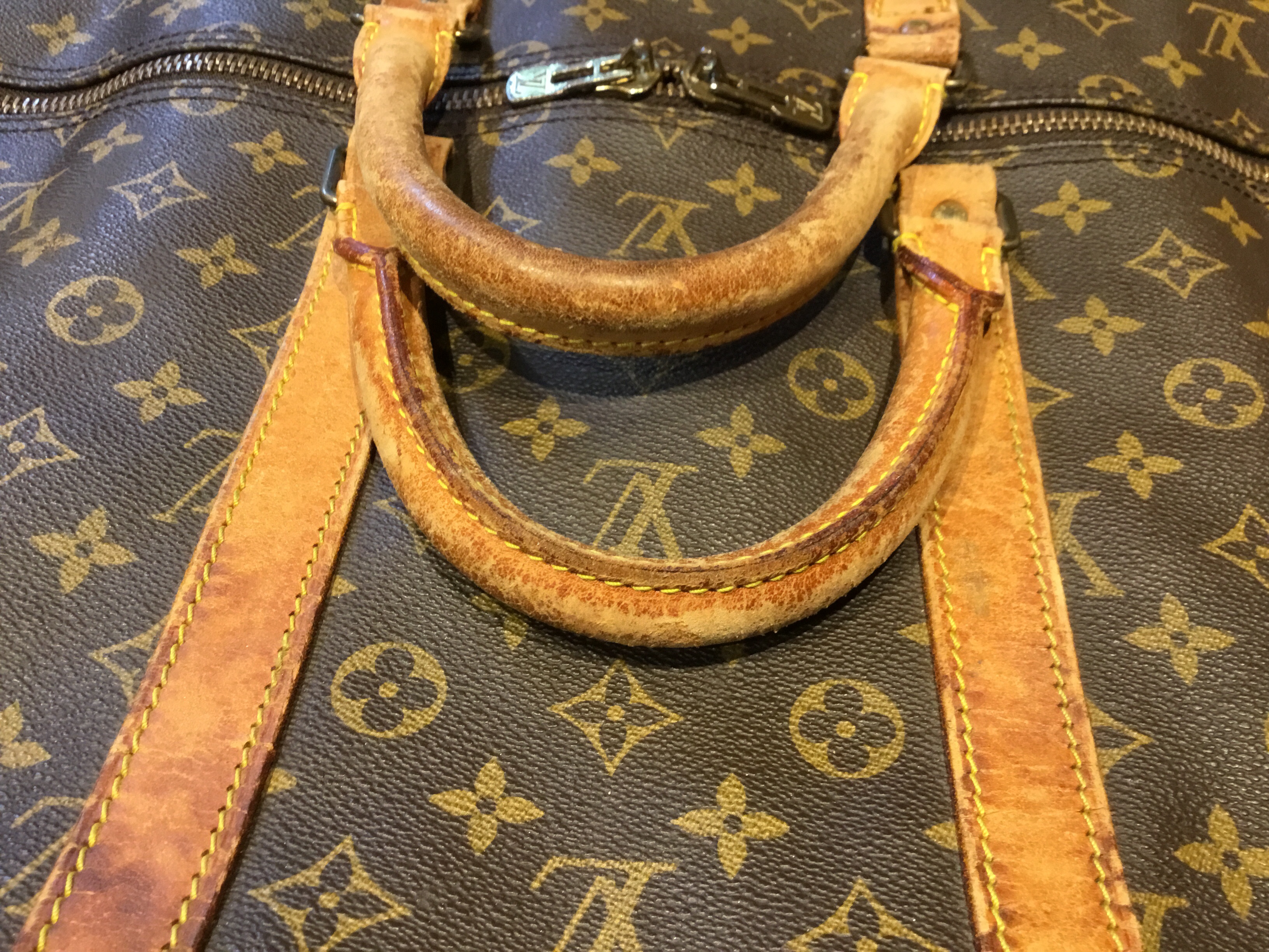 Louis Vuitton Keepall 55, Leather tab and handle end is broken, Travel bag